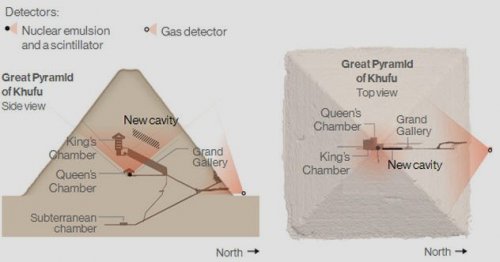 Мюонные детекторы оставались внутри пирамиды в течение нескольких месяцев. Когда в 2016 году данные были проанализированы, все были ошеломлены тем, что в пирамиде есть полость. Исследование с помощью мюонов показало, что размер поперечного сечения обнаруженной полости соответствует сечению Большой галереи. В отличие от последней, которая ведет к могиле фараона Хуфу (2509-2483 до н.э.), эта обнаруженная полость, похоже, была запечатана. Мюоны могут нарисовать только ограниченную картину. Непонятно, что внутри, почему эта полость была сделана в 4500-летнем памятнике, или же это комбинированное изображение сразу нескольких структур. Одна предварительная теория предполагает, что это может быть выведенная из эксплуатации рампа.