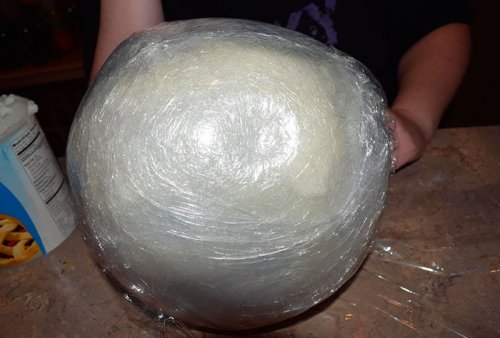 Они использовали почти целый рулон пищевой плёнки и полбанки жира. Слоёв жира они сделали так много, что потеряли им счёт, и если нажать на шар рукой, то остаётся вмятина.