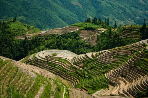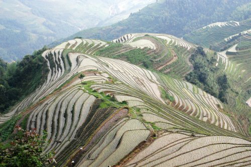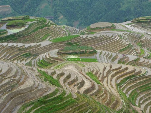 У деревенских старейшин есть поговорка о Луншэн (Longsheng): «Где есть земля, там есть терраса». В двух часах езды от города Гуйлинь (Guilin) в провинции Гуанси (Guanxi) проблема выращивания риса на крутых холмах была решена уже давно. Со времен династии Юань (Yuan Dynasty) в конце тринадцатого века началась колоссальная работа по превращению холмов Луншэн в террасы, чтобы обеспечить урожай риса.