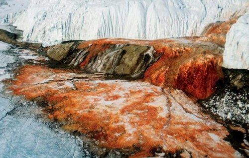 Этот с виду жуткий водопад находится на территории Сухих долин Мак-Мердо (McMurdo Dry Valleys) в Антарктиде. У самого истока вода водопада окрашена в темно-алый цвет, и когда полярники впервые увидели этот уникальный природный объект, им показалось, что перед ними настоящая кровавая река, текущая из недр зловещего ледника. К счастью, феномен связан с намного более безобидной причиной.