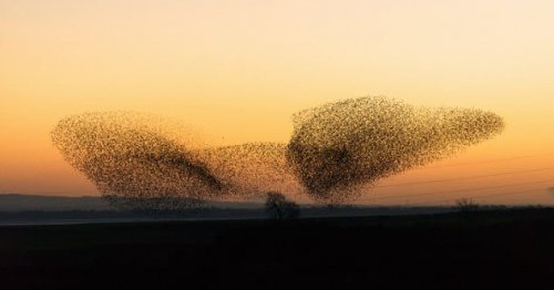 На фотографии перед вами совсем не облако и не стая мух. Это тысячи птиц, собравшихся в одну упорядоченную стаю, и показывающих в воздухе истинные трюки высшего пилотажа. Необычные формы и размеры такого птичьего искусства способны поразить любого случайного зрителя, и встречается этот феномен не так часто, причем главными героями своеобразного воздушного танца обычно становятся именно скворцы.