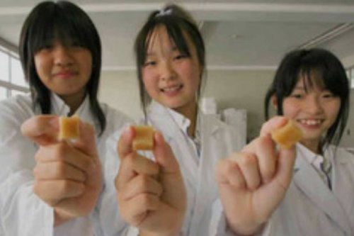 Студенты из Высшей школы рыболовства Обамы (Obama Fisheries High School) в Обаме, Япония, варили надоедливую медузу, пока она не превращалась в клейкую массу, а затем измельчали. Затем они смешали порошок медузы с сахаром и крахмальным сиропом, чтобы создать конфеты и сладости.