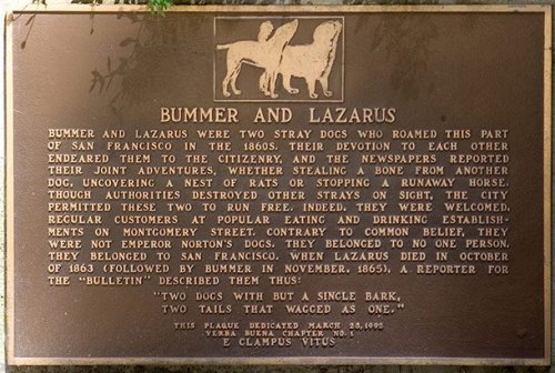 В 1860-х годах власти Сан-Франциско издали закон по борьбе с бродячими собаками, слишком сильно наводнившими улицы города. Однако двух собак по кличке Баммер и Лазарус (Bummer, Lazarus) этот закон не касался – они могли беспрепятственно сновать по подворотням и не боятся специальных служб. Этих животных помиловали по очень простой причине – они были прекрасными крысоловами. В середине 19 века мелкие грызуны очень сильно беспокоили жителей Сан-Франциско, а по примерным подсчетам экспертов Баммер и Лазарус вдвоем всего за один зимний месяц убивали до 400 крыс. Знаменитые дворняги были настоящими героями города и даже попали на мемориальную табличку.