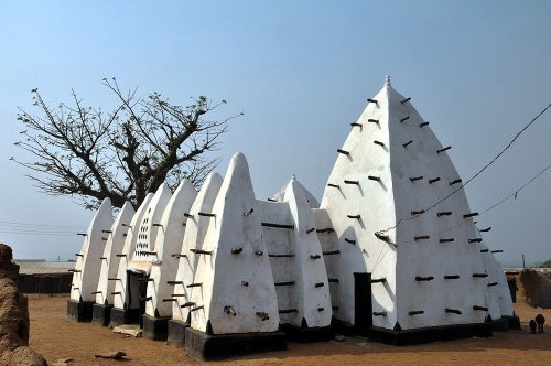 Мечеть Ларабанга (Larabanga Mosque) в деревне Ларабанга, Гана, является еще одним примером Судано-Сахелианской архитектуры. Воспринимаемая как «Мекка Западной Африки», это старейшая мечеть в стране и одна из старейших в Западной Африке. Мечеть построена из грязи и тростника и имеет две высокие башни пирамидальной формы. Они поддерживаются двенадцатью выпуклыми структурами на внешних стенах, которые усилены горизонтальными балками. Фото: Sathyan Velumani/Wikimedia