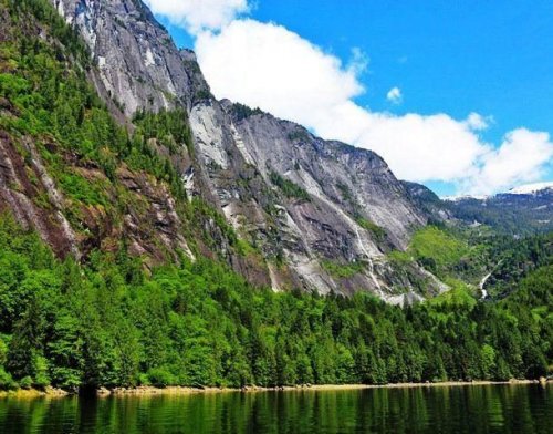 Водопад Джеймс-Брюс, расположенный в парке Princess Louisa Marine Provincial Park в Британской Колумбии, Канада, является самым высоким из нескольких десятков водопадов, которые стекают по скалам в бухту принцессы Луизы. Водопады питаются небольшим оставшимся ледником, расположенным на высоте 1,524 м над уровнем моря.