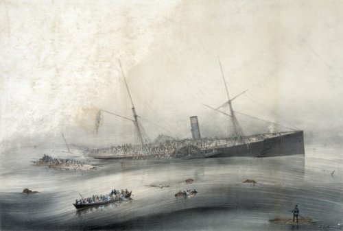 В 1854 году американский корабль «SS Arctic» столкнулся с французским пароходом. После удара оба судна остались на плаву, но инцидент все равно закончился довольно печально. Во время этой аварии погибло почти 350 человек, и на борту американского корабля почему-то выжили только мужчины, а все женщины и дети скончались во время столкновения. Вдобавок, пострадавший «SS Arctic» продолжил свой путь к берегу, но так никогда до него и не добрался.