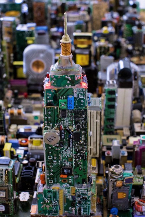 По словам молодого художника, он всегда считал, что крошечные комплектующие на печатных платах похожи на маленькие города, поэтому идея создать город из компьютерных деталей пришла сама собой.