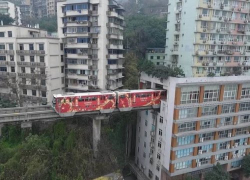 24. Обычный день в Китае, и обычный поезд, проезжающий сквозь жилое здание.