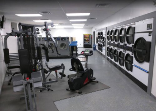 Прачечная, совмещённая с тренажёрным залом, чтобы можно было позаниматься, пока стирается одежда.
