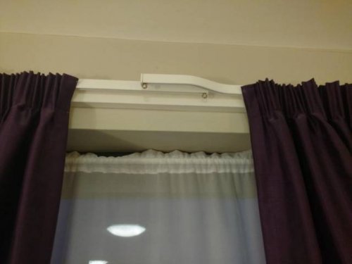 Дизайн карниза для штор сделан таким образом, чтобы в середине не образовывался раздражающий зазор.