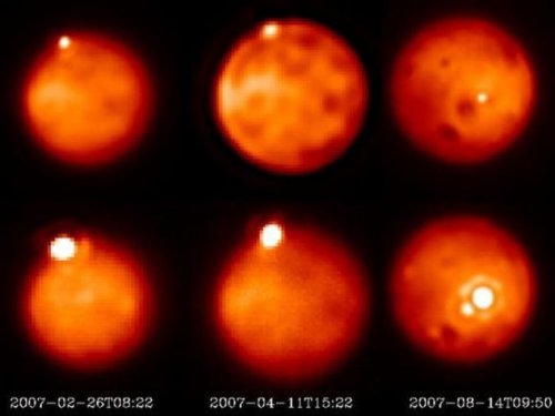 Кроме того, во время этого «теневого эффекта» происходит нечто совсем необычное: во время этих коротких затмений атмосфера Ио существенно разрушается. Примерно через два часа, когда солнечный свет начинает достигать поверхности Ио, атмосфера спутника возрождается, поскольку выпавший серный снег возвращается в газообразное состояние (сублимация). Таким образом, атмосфера Ио находится в бесконечном цикле разрушения и возрождения, поскольку солнечный свет влияет не только на температуру на поверхности, но и на существование атмосферы вокруг луны.