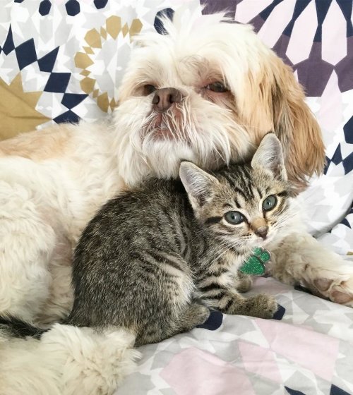 Когда на попечении Муна оказался шатающийся котенок, Мун был очень заботливым и не выпускал его из-под своей опеки.