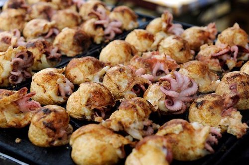 Популярной едой на улицах Осаки является такояки, это блюдо также известно как шарики из осьминога. Их также называют пельменями с осьминогом, которые обжаривают в тесте и подают с соусом такояки.