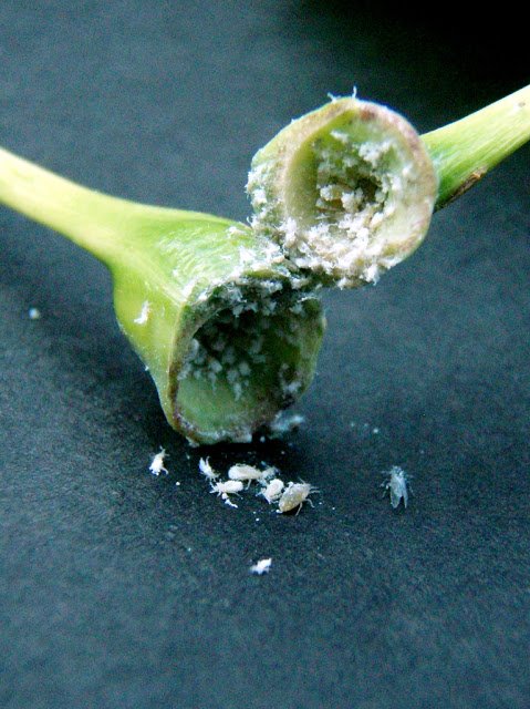 Как вы уже поняли, не только орехотворки причастны к появлению на растениях этих загадочных образований. Некоторые виды тли ведут себя точно так же. На следующей фотографии легко рассмотреть вылупившееся поколение тли вида Pemphigus populitransversus. Каждый июль они вылезают из опавших на землю зеленых листьев тополя и спешат наружу в поисках еды.