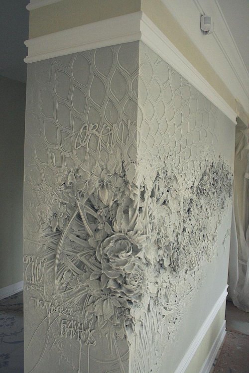 Огромные павлины, букеты цветов и декоративные завитки возвышаются над плоской поверхностью, превращаясь в часть домашнего декора и становясь потрясающими произведениями искусства.
