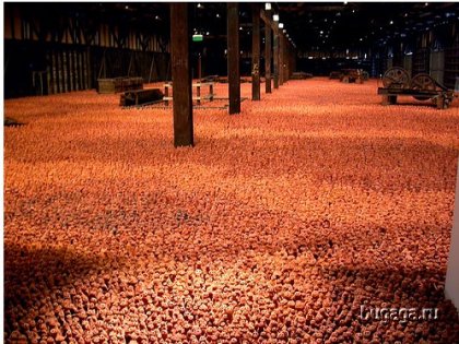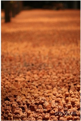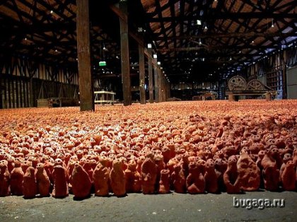 Работа британского художника Энтони Гормлея. Он уставновил 180000 статуэток из глины ручной работы. На это все ушло около 100 тонн красной глины и работы около 350 сельских жителей Китая. 360000 глаз этих фигурок приводят в полное замешательство! Как говорит Гормлей: "Это искусство не для того чтобы на него смотрели - оно смотрит на Вас!