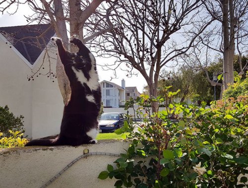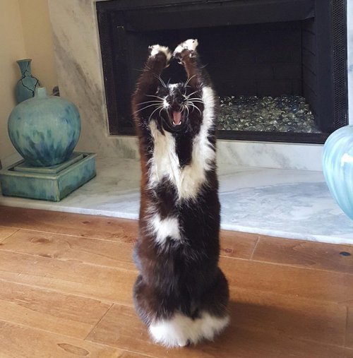 Владелец кошки, калифорниец Питер Марес (Peter Mares) говорит, что увидел её однажды утром со вскинутыми вверх лапами и быстро запечатлел её в таком необычном движении. На следующий день она сделала так снова, и он опять сфотографировал свою кошку в такой позе. Зачем и почему она так делает, остаётся неизвестных.