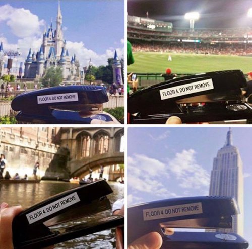 Надпись на степлере: «4-й этаж. Никуда не уносить!»