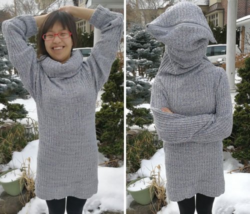 Рут придумала этот свитер шутки ради в качестве проекта только для себя самой, и считает такую вещь больше заявлением, чем функциональным предметом гардероба, потому что после переключения на режим «не беспокоить» в нем ничего не видно.