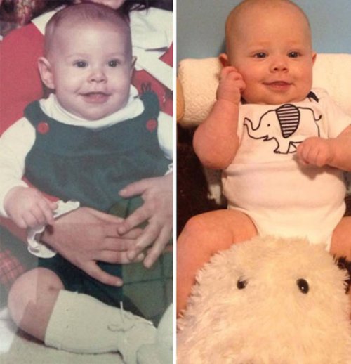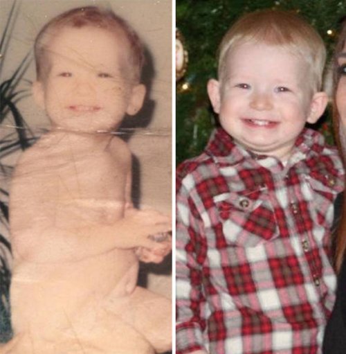 Однако в этой замечательной коллекции семейных фотографий вы увидите не только детей, удивительно похожих на своих родителей, но и внуков, которые имеют невероятное сходство со своими бабушками и дедушками!