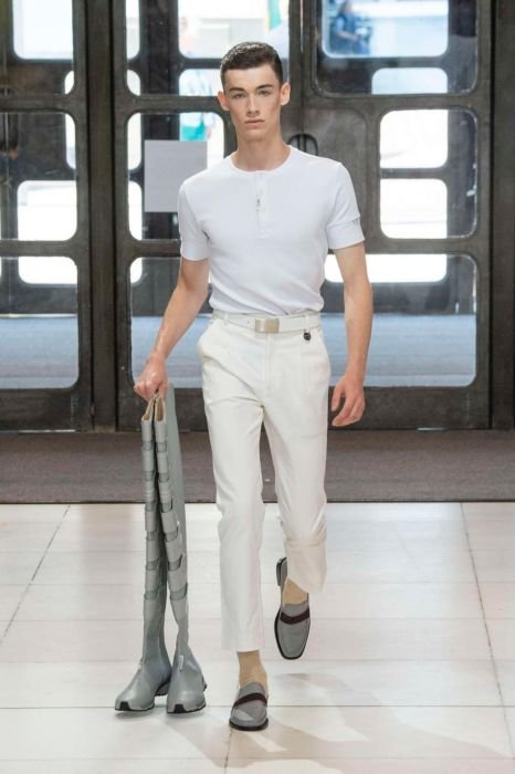 В своей коллекции китайский дизайнер воплотил свои причудливые идеи о будущем в мужскую одежду, вдохновившись как традиционными китайскими мифами, так и западной поп-культурой.