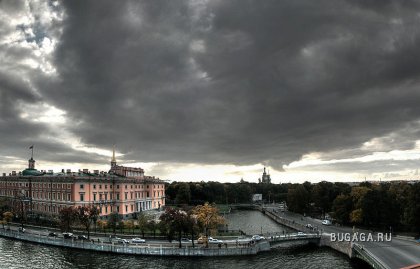 Выше крыши клубилось небо,