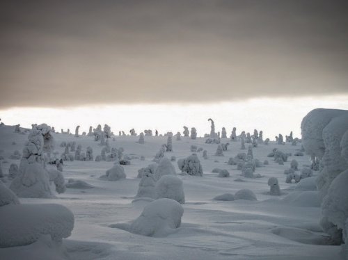 Будучи частью большой таёжной лесной зоны и находясь на северной окраине Евразийского континента, парк по большей части покрыт похожими на свечки елями и густым мхом. Воздух становится относительно более влажным по мере того, как вы поднимаетесь наверх, а зимой влага конденсируется на деревьях, превращая их в «tykky» - финское слово для скопления твёрдого снега и инея на деревьях. Горные вершины, находящиеся всего в 400 метрах над уровнем моря, зачастую окутаны облаками и туманом, сочетающимися с умеренными ветрами, поэтому лёд и снег приклеиваются к деревьям и в зимний период скапливаются толстым слоем, особенно в течение тех месяцев, когда солнце находится низко в небе. Большинство деревьев не могут выдержать огромную массу снега и сгибаются в крутые дуги, а некоторые деревья ломаются. Вам обязательно стоит посмотреть на снежные леса парка в зимнее время.