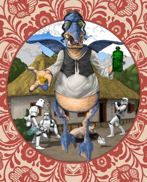 Украинский художник и иллюстратор Андрей Ермоленко решил пофантазировать, какой могла получиться знаменитая фантастическая сага "Звёздные войны", если бы съёмки проходили в одном из украинских сёл. Насколько традиционная культура и сельский колорит могли повлиять на внешность главных персонажей и сюжет фильма, вы увидите в его работах: