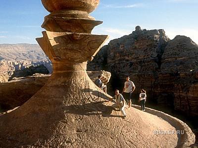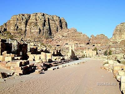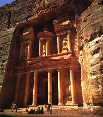 В наши дни около полумиллиона туристов приезжают в Иорданию каждый год, чтобы посмотреть на Петру, строения которой свидетельствуют о ее славном прошлом. Когда туристы проходят по прохладному каньону Сик длиной в километр, за поворотом им открывается Сокровищница — величественное здание с фасадом, высеченным из огромной скалы. Это одно из наиболее сохранившихся сооружений первого века. Здание венчает огромная урна из камня, в которой якобы хранилось золото и драгоценные камни,— отсюда и происходит название «Сокровищница». Каньон постепенно расширяется, и туристы попадают в естественный амфитеатр, в песчаниковых стенах которого множество пещер. Но главное, что бросается в глаза,— это выдолбленные в скалах склепы в которые непременно желают попасть туристы. Колоннада и амфитеатр свидетельствуют о присутствии римлян в городе в первом и втором веках. Современные бедуины, потомки набатеев, предлагают уставшим туристам проехаться на верблюде, продают сувениры и поят свои стада коз у городских источников, воды которых утоляют жажду людей и животных. По старым мощеным дорогам Петры до сих пор ходят исключительно верблюды, лошади и ослы.