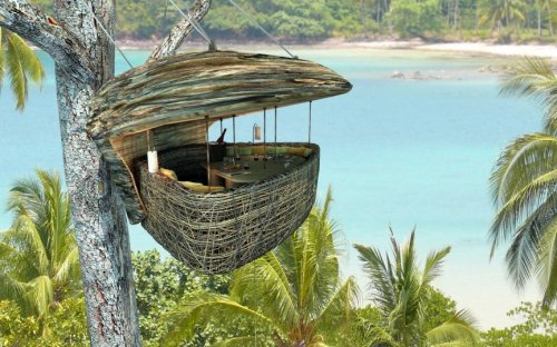 Доставляет посетителей на вершину дерева специальная подъемная корзина. Здесь вы сможете насладиться местными деликатесами и высоким качеством сервиса. Более того, с верхушек деревьев открывается живописный вид на тропические заросли, выходящие к самому берегу моря.