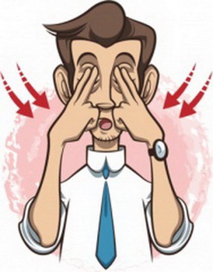 Обопритесь на локти и закройте глаза. Закройте глаза пальцами, вглядываясь в темноту. Расслабьтесь и побудьте в таком положении 1-3 минуты.