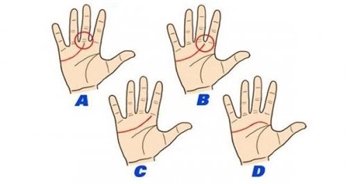 D: Если линия начинается между указательным и большим пальцем, то вы терпеливы, внимательны и мягкосердечны, с добрыми намерениями.