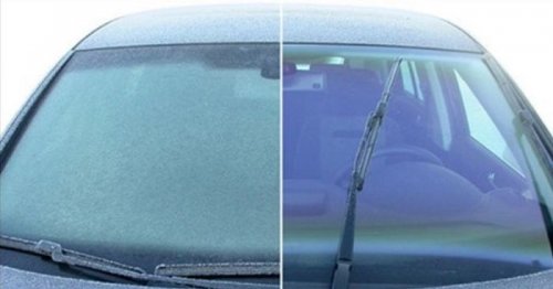 Если вас утомляет пользоваться пластиковыми скребками, то предлагаем очень быстрый и эффективный способ. Для этого нужно приготовить смесь, состоящую из 2-ух частей спирта, 1-ой части воды и небольшого количества жидкости для мытья посуды. Всё это перелейте в бутылку с пульверизатором. Теперь вам будет достаточно лишь распылить жидкость на стёкло, чтобы увидеть, как лёд исчезнет прямо на глазах.