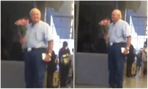 На видео пожилой мужчина в аэропорту с букетом цветов кого-то ждёт… И как только в дверях появляется она, становится очевидно, что встретились два любящих, родных человека, которые ненадолго расставались.