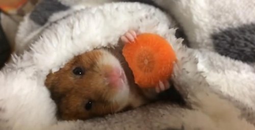 Оказывается, не только человеку нравится есть на ночь, лёжа в кровати! В Японии живёт прелестный хомяк Майк, видео с которым пленило сердца пользователей сети по всему миру. На этом видео забавный маленький грызун перед сном, лёжа под одеялом, жуёт своё любимое лакомство — морковку. Взгляните на это очарование!
