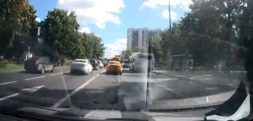 Это видео, сделанное на одной из московских улиц, демонстрирует, что происходит, когда оказываешься рядом с такой машиной в пробке в жаркий летний день (по всей вероятности, из-за сильной жары лопнул корпус).