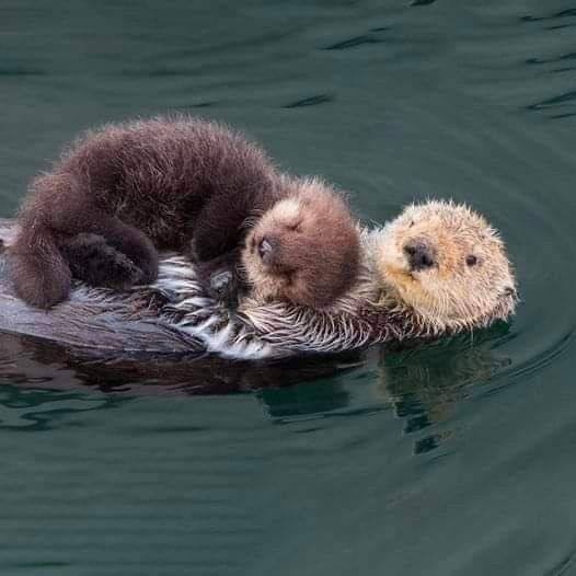 14. Должно быть, маме-выдре тяжеловато, но выглядит она довольно: