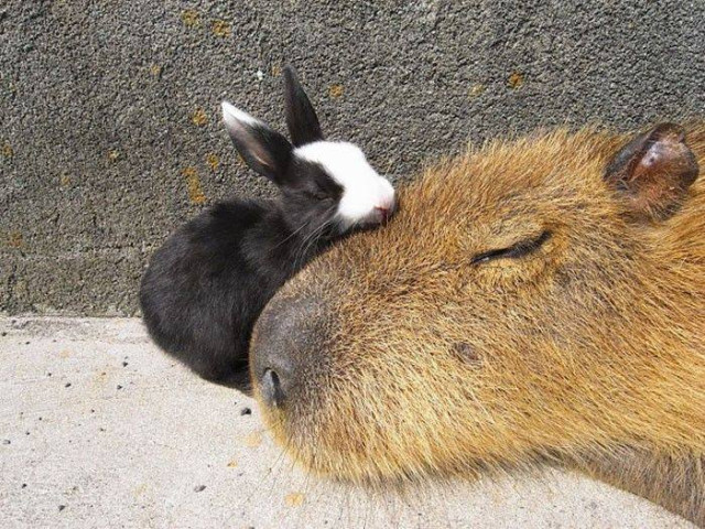Капибара - это самый крупный грызун на планете. Большие размеры не делают зверька агрессивным или тем более хищным, скорее, даже наоборот. С толстенькими и мягкими капибарами любят обниматься и животные, и птицы, и даже рептилии. Считается, что нет такого существа, с которым бы не мог подружиться этот зубастик. Наша коллекция фото станет очередным доказательством этой теории!
