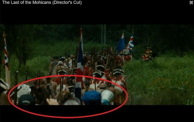 13. В фильме «Последний из могикан» (1992) можно увидеть бейсболки и мегафон съёмочной группы