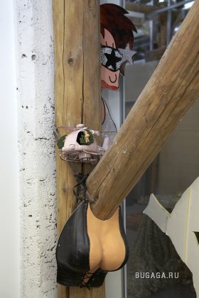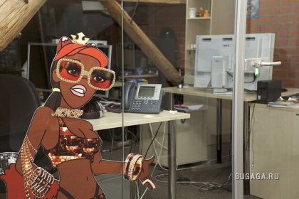 Все просторное офисное пространство 2×2 уставлено фигурами героев мультиков и всевозможным реквизитом, которые остаются на память после мероприятий и съемок промо-роликов. Офис телеканала часто используется еще и как студия. Поэтому студийный свет, штативы и видео-мониторы посреди помещения никого не удивляют.