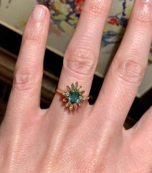 3. «Моя находка в комиссионном магазине. Кольцо из 18-каратного золота с изумрудом и бриллиантами. 16 долларов»