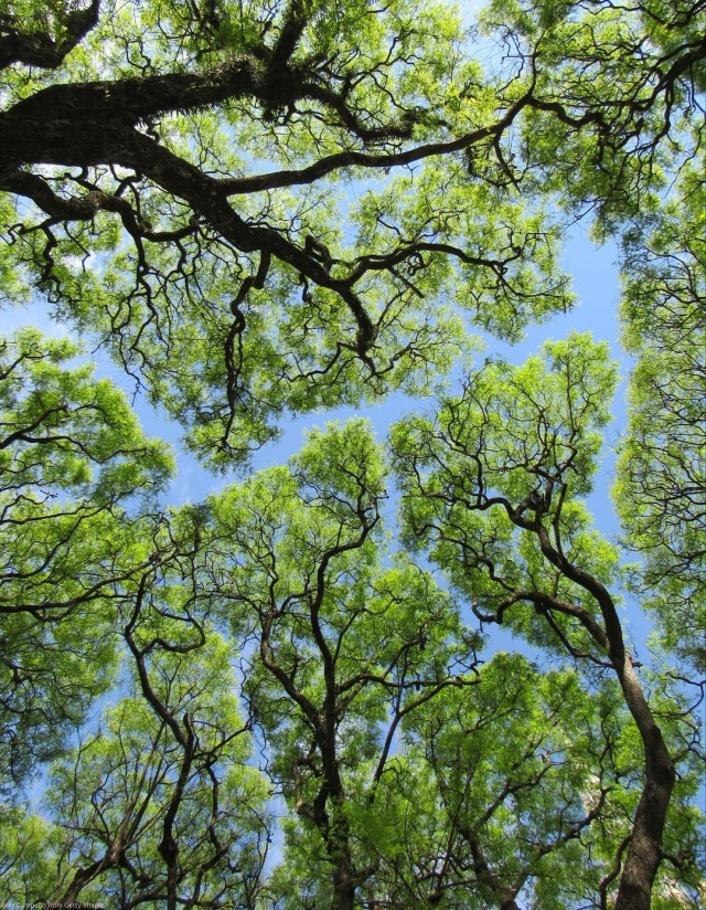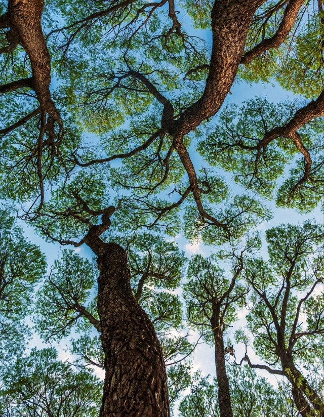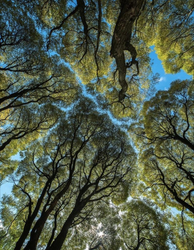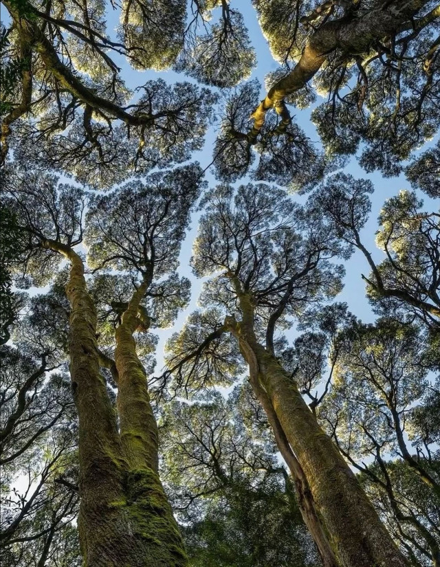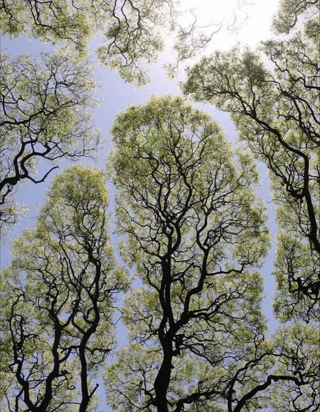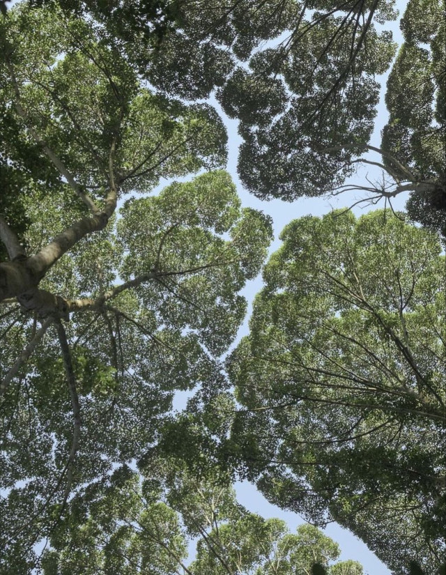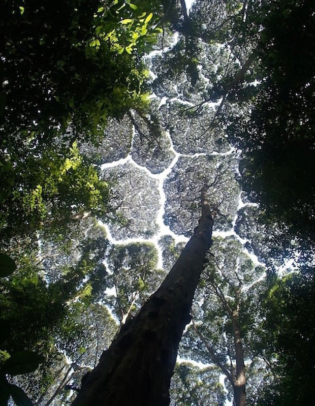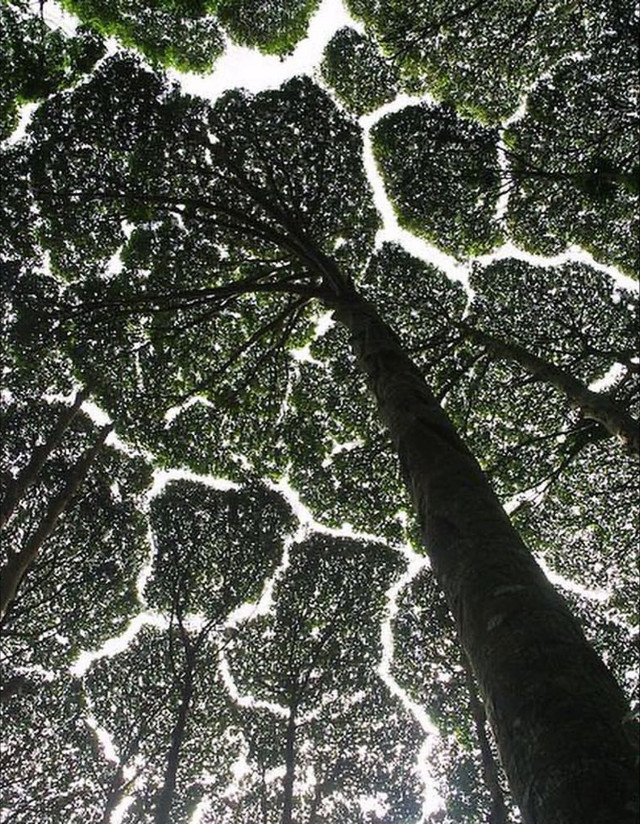 Есть в природе редкое явление — «застенчивость кроны». Некоторые виды деревьев, растущие бок о бок, будто бы избегают касаться друг друга. Их ветви и листья не сплетаются, а останавливаются за мгновение до прикосновения, создавая в кронах леса замысловатый узор — зелёные острова, разделённые струйками света.