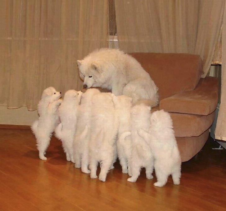 Мы не смогли устоять перед очарованием самоедов и призываем вас постараться не сломать свои мимиметры, когда вы будете рассматривать фотографии с этими прелестными пушистиками!