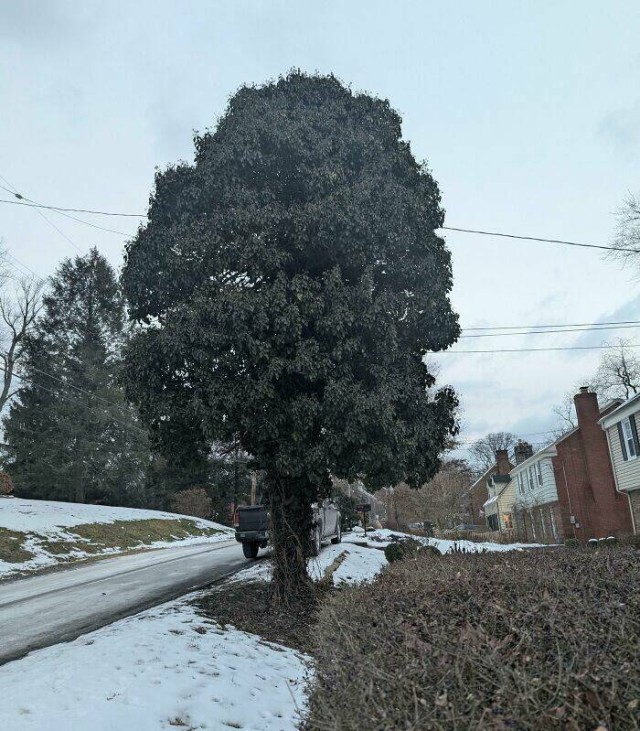 6. Плющ на телефонном столбе, делающий его похожим на дерево