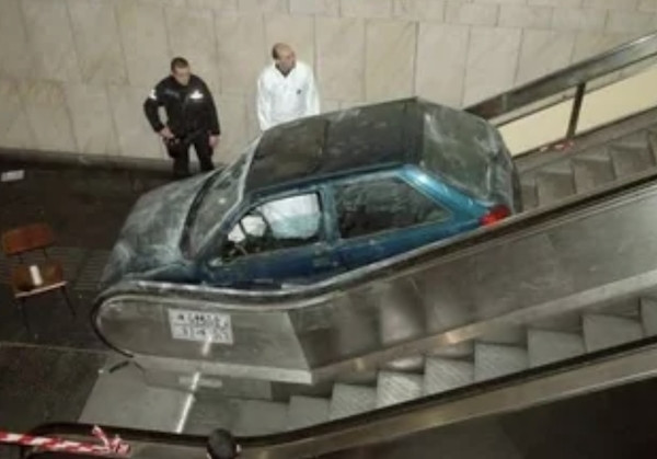 Автомобиль на эскалаторе? Хм. Пицца, пристёгнутая велозамком, как последний рубеж безопасности? Легко!