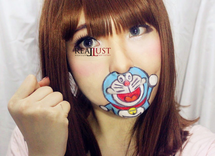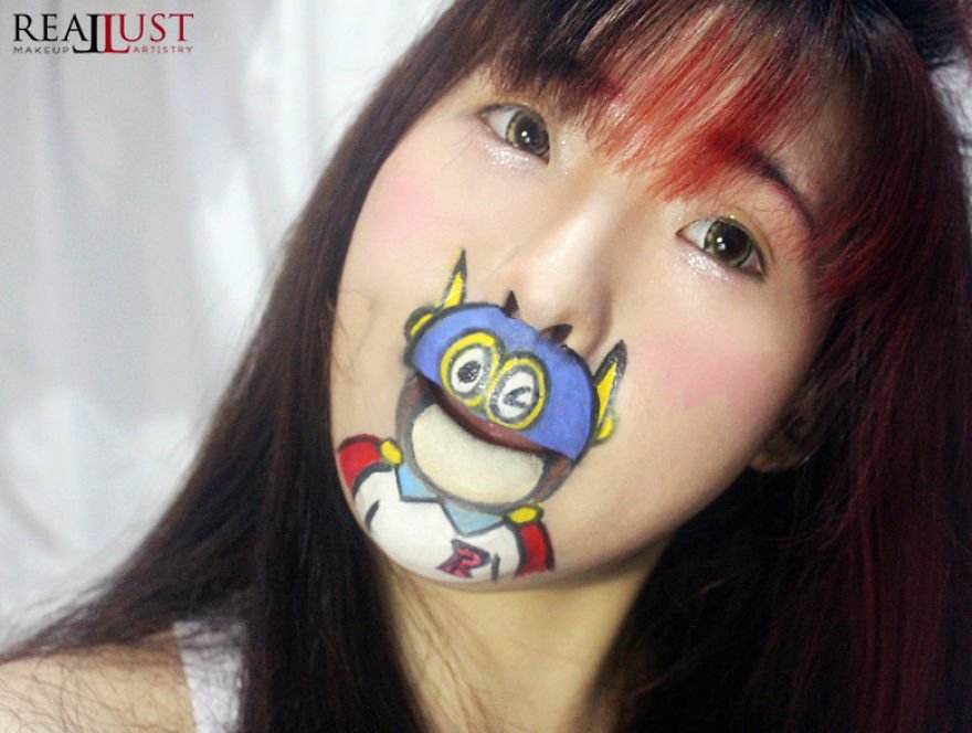 Японская визажистка Аюки Аикава (Aiyuki Aikawa) рисует вокруг рта различных персонажей, которые оживают и превращаются в настоящих, как только она начинает шевелить губами.