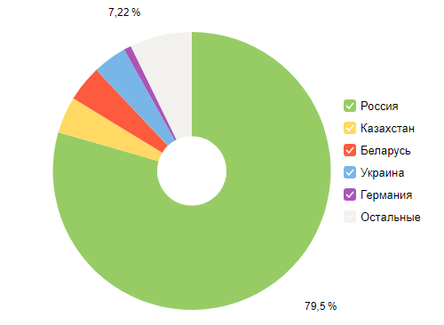 - Уникальных посетителей в сутки: 35-50 тысяч, подробности можно посмотреть в статистике по запросу.